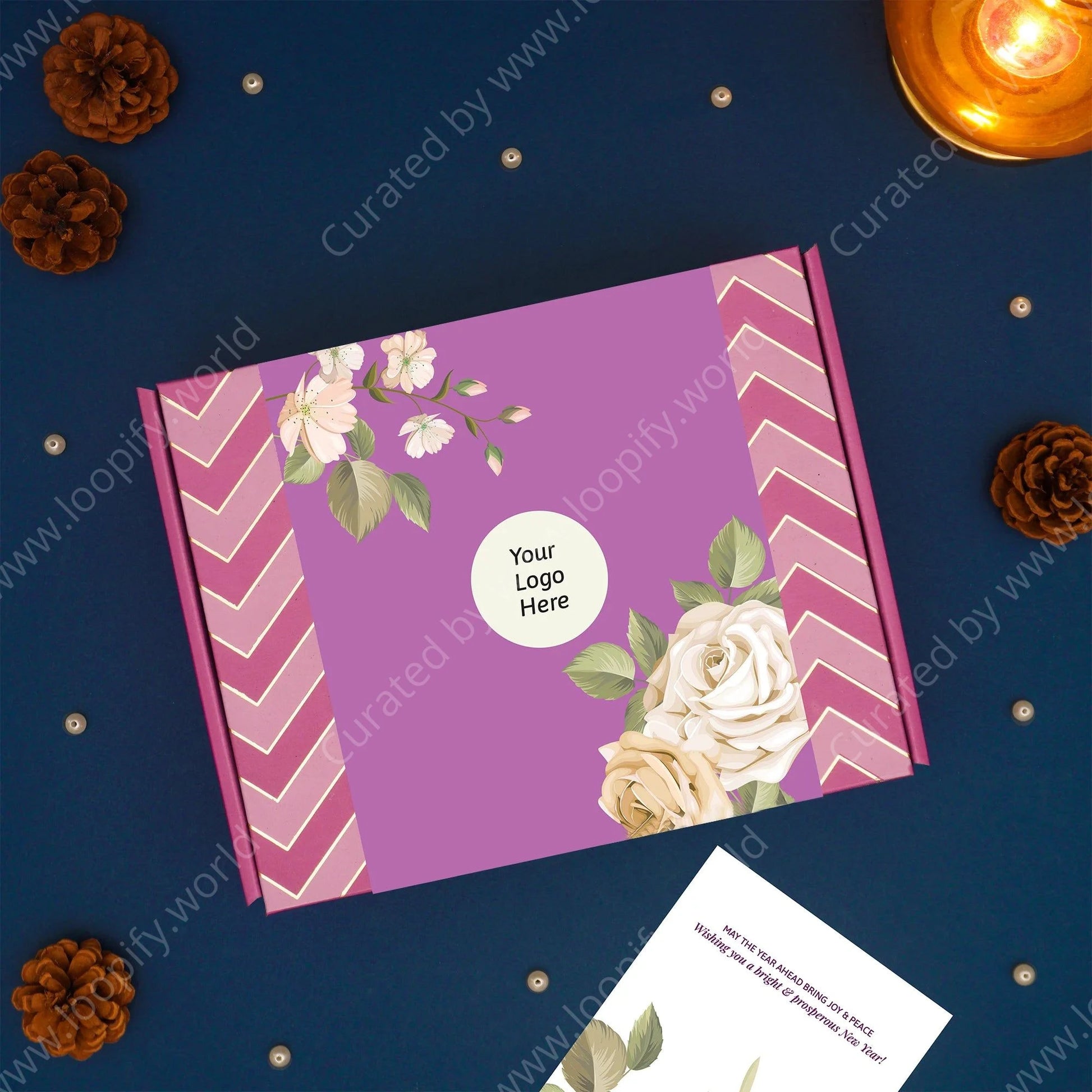 1 Kraft paper notebook 1 Trendy sipper made of wheatgrass 1 Vegan leather goggle case 1 Vegan leather visiting card holder 1 New Year greeting card 1 Festive Gift Box